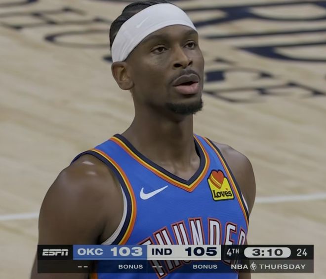 上半场比赛半场亚历山大已经罚球12个了,8次出手进了5个球,但是12罚11中拿到21分,半场21分全场稳稳30加应该问题不大,但是他的罚球是真多,亚历山大的中投包括突破威胁性之所以高,是因为很多时候在别人身上那种可吹可不吹的球,到了他身上都会被吹,别人不想碰他了,那自然罚球就多了,现在他这一突破是真有哨子,一碰就吹。